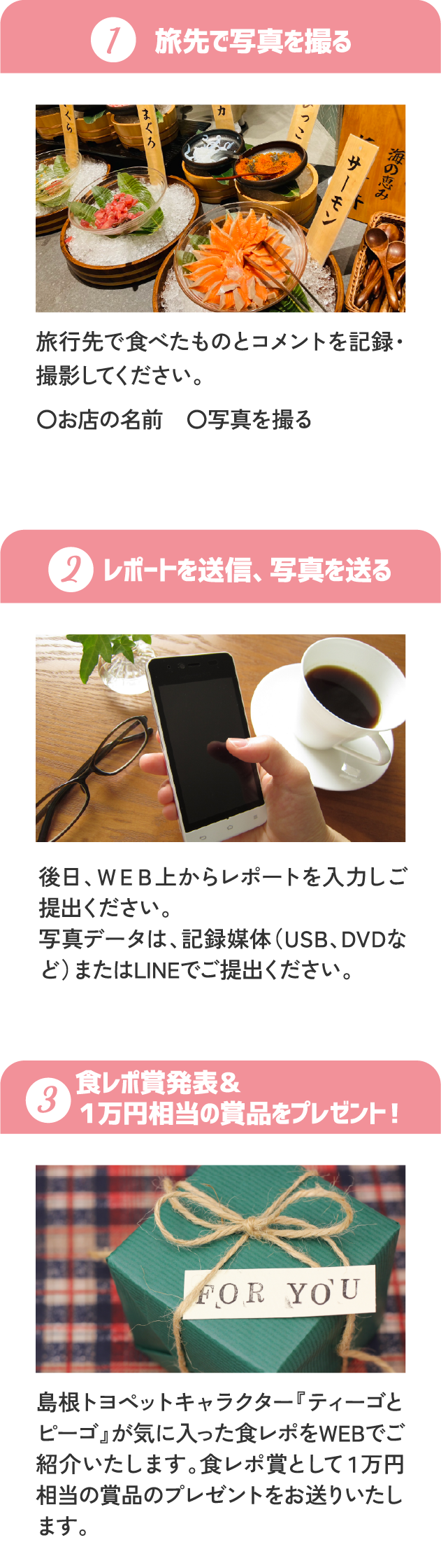 旅の思い出は島根トヨペットのホームページでご紹介させていただきます。多くの笑顔が見られますように!たくさんのご応募をお待ちしております!